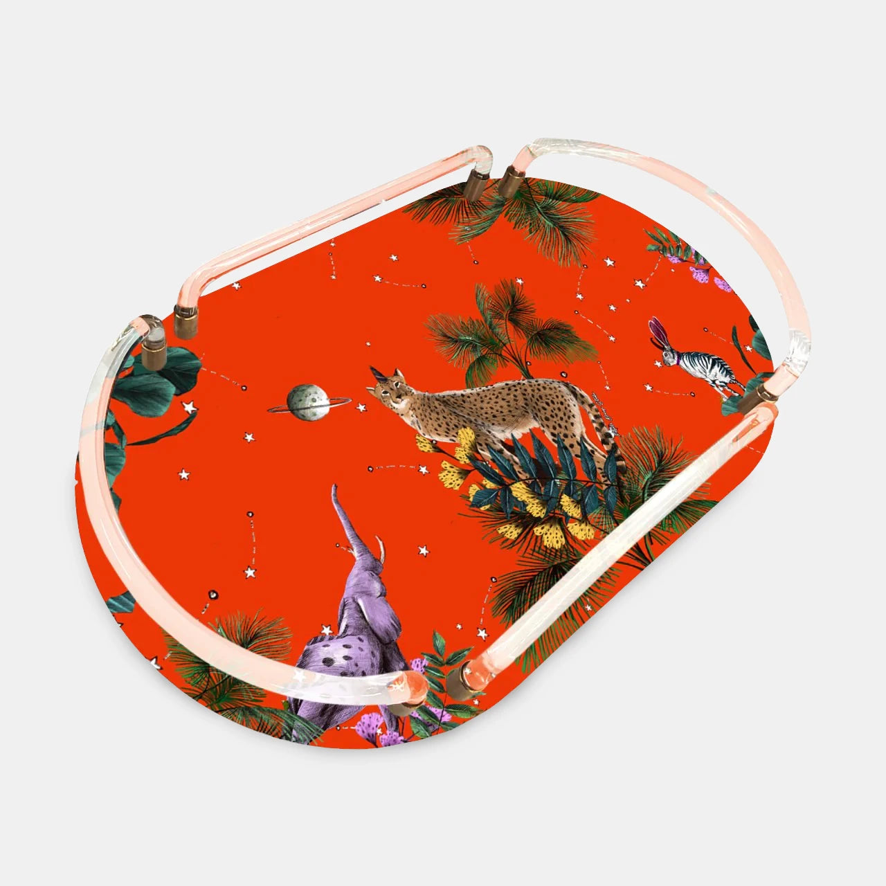 Wonderland Turuncu Leopar Oval Akrilik Tepsi